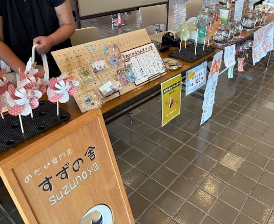 ふれあいフェスティバルではめだかの出品は出来なかったのですが、利用者が日々懸命に作成したグッズを販売致しました。たくさんの方に手に取ってもらいお買い上げいただきました。ありがとうございました!