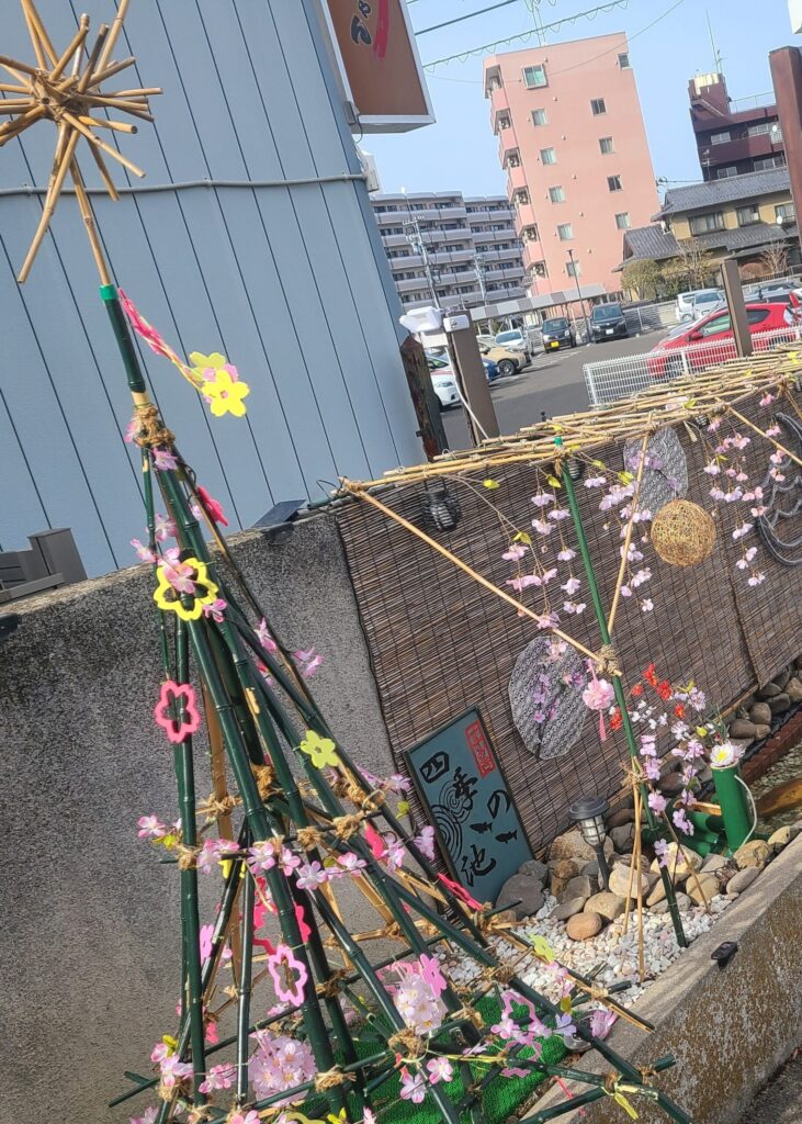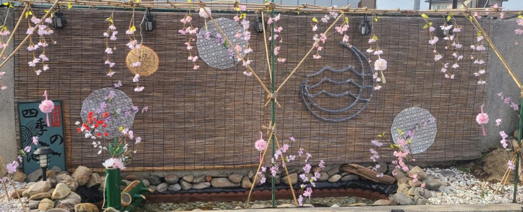 いままではイルミネーションがメインの夜にきれいさ際立つ池となっていましたが、桜の装飾を取り付けたことでかわいい春を感じさせる池に変身しました‼